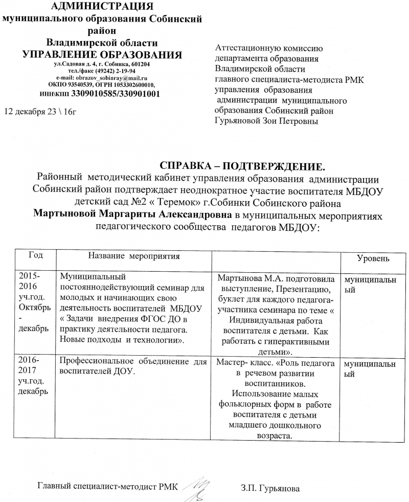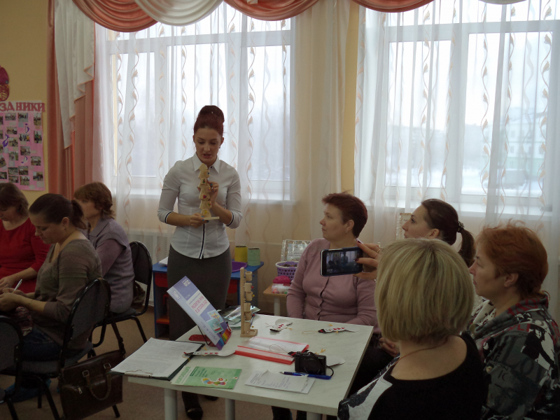 15 декабря 2016 года на базе МДОУ№ 2 прошел мой мастер-класс на тему "Познавательно-речевое развитие младших дошкольников с помощью малых форм фольклора". Воспитатели со всего района не только вспомнили особенности и методы речевого развития дошкольников, но и проработали отдельные эелементы индивидуальной работы с детьми, узнали, как сделать развивающий материал для речевых игр с ребенком. Педагогам наша встреча понравилась, и они ушли, вдохновленные новыми идеями.